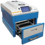 | N2対応可能 卓上型バッチ式リフロー HR-11 インダストリー4.0に対応し、スマホやタブレットによる設定制御(Bluetooth通信+タブレットIR) +対流加熱を備えた、鉛フリーはんだ対応可能の手動ドア開閉のリフローです。対流加熱を備え強制熱風対流により、 チャンバー全体の温度分布が均一です。ドアを開いた後、冷却ファンがオ ンになり、はんだ付けされた基板をすばやく冷却し良好なはんだ硬化を行えます。 |